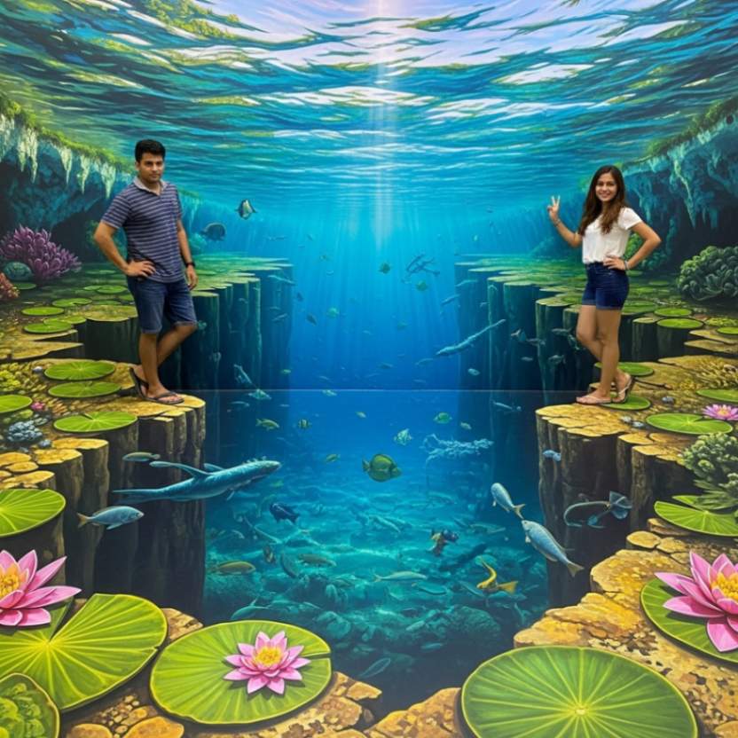 Immersive 3D Art: Interact directly with hand-painted optical illusions that transform you into part of the artwork.